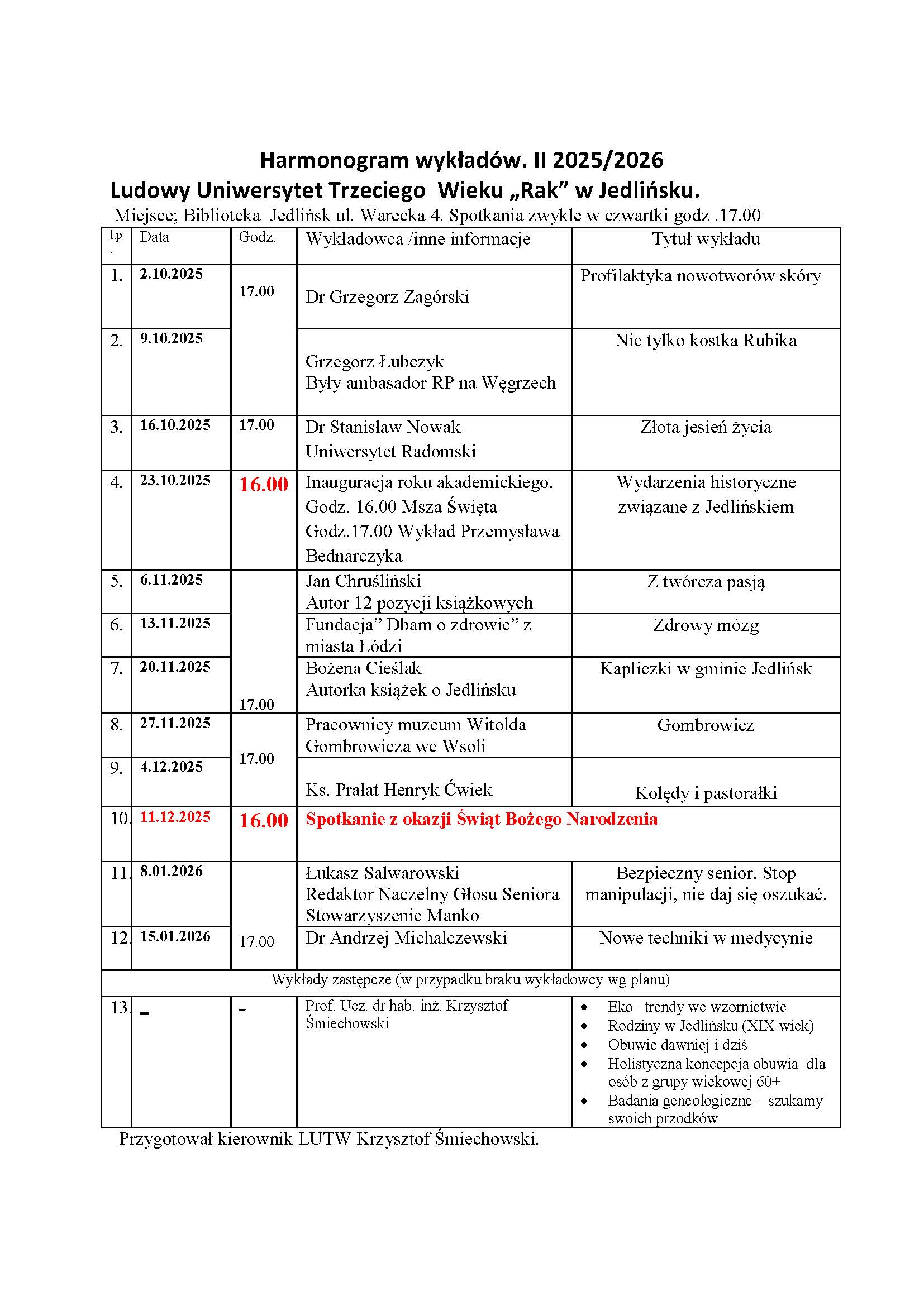 Ludowy Uniwersytet Trzeciego Wieku „Rak” w Jedlińsku
